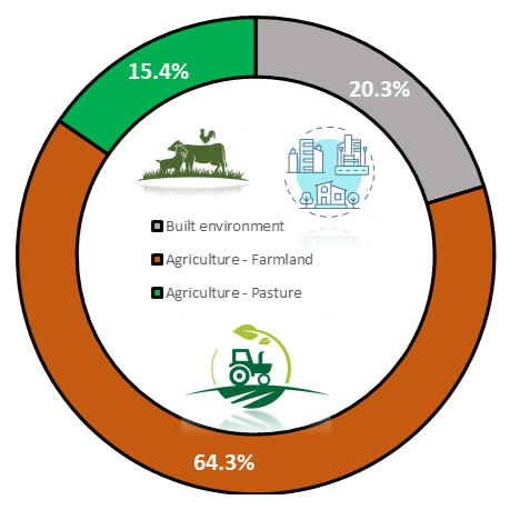 Târgu Secuiesc micro-region has a total area of 42.86 km2 from which 8.7 km2 (20%) is urban constructed area i.e. settlements, 27.55 km2 farmland used in crop production (64%) and 6.61 km2 (15%) pasture utilised in livestock sector. Thus 79% of the total area of the administrative unit is accounted for the agriculture sector having a significant impact on our society in many ways i.e. supports livelihoods through food, habitat, and jobs; provides raw materials for food and other products; and builds strong economies through trade, all these aspects are heavily depended on climate risk management and adaptation measures.